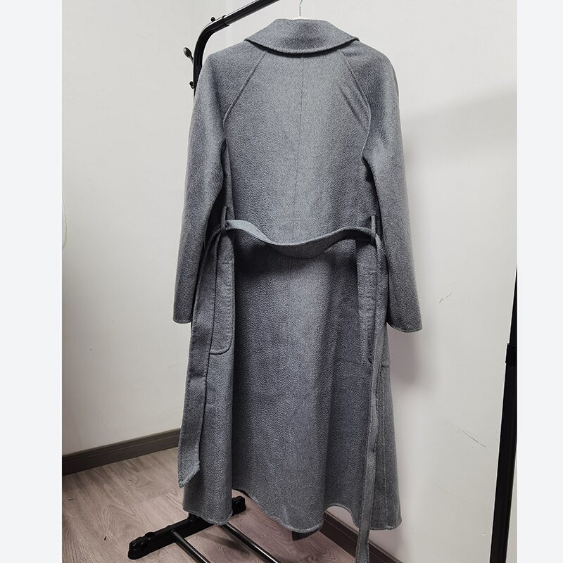 Creatingtime Water Ripple Bathrobe Style Double-sided Cashmere Woolen Coat Women's Notched Bandage 2023 Spring Autumn New GA809