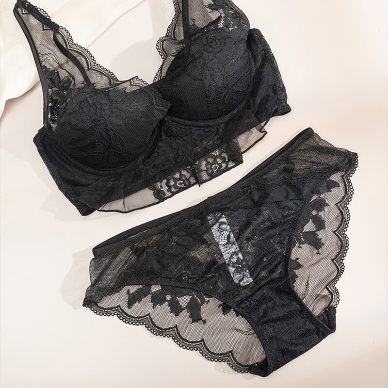 Sexy Lace Lingerie Set Female Two-piece Top Padded Bra Panties Suit Push Up Underwire Hide Accessory Breast Underwear For Women