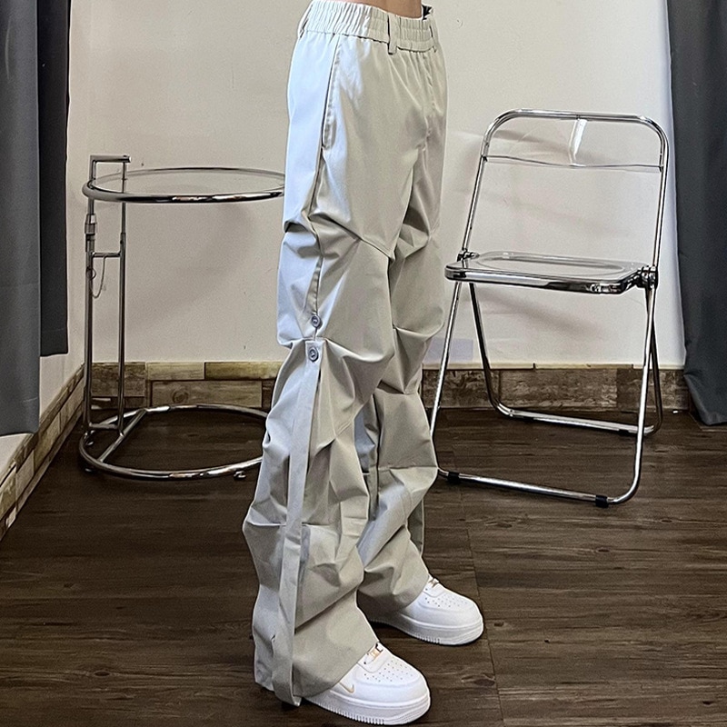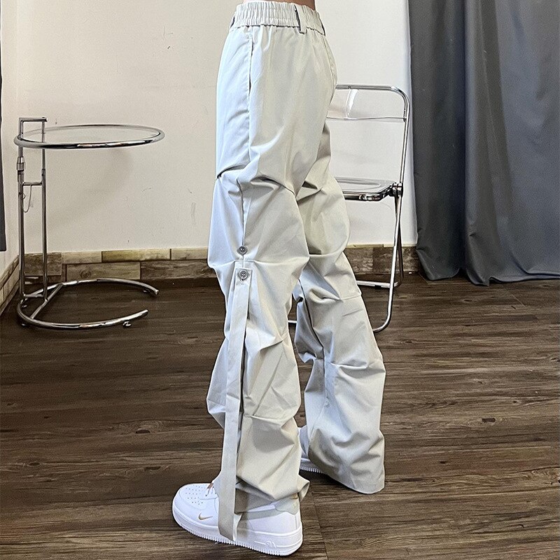 IEFB High Street Pleated Overalls Men's Pants Fashion Loose Straight Button Casual Male Trousers Solid Color Darkwear 9A6007