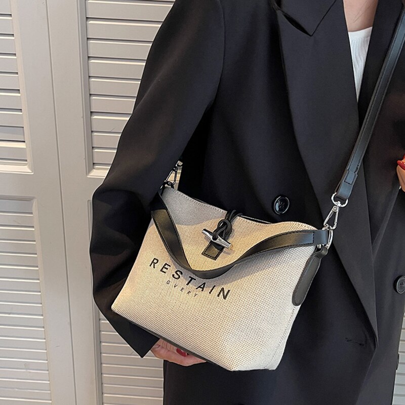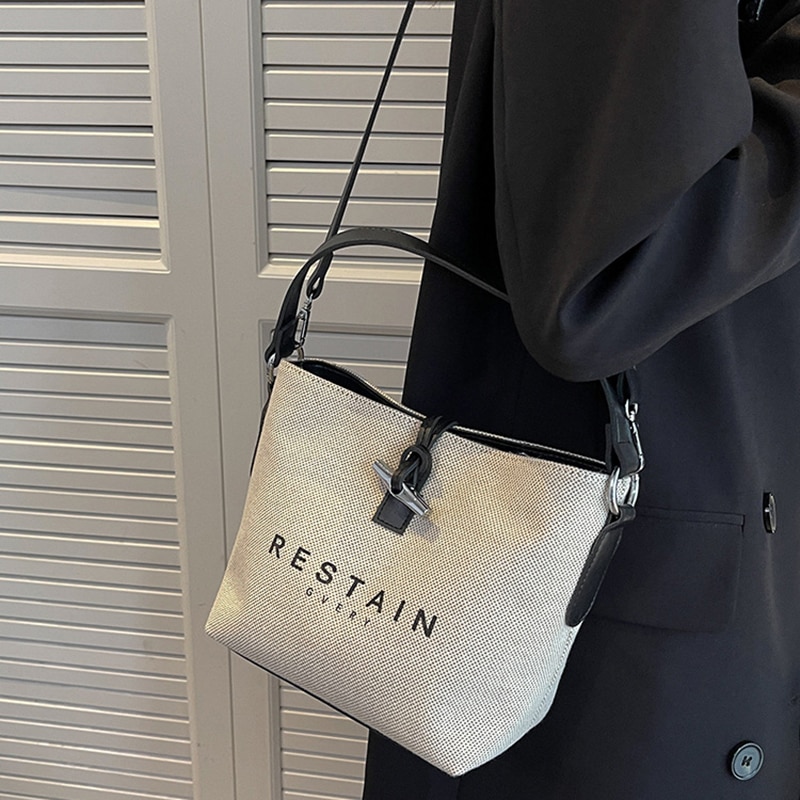 Women's New Popular Canvas Shoulder Bags Fashion High Quality Satchel Versatile Handbag Simple Casual Retro Bucket Crossbody Bag
