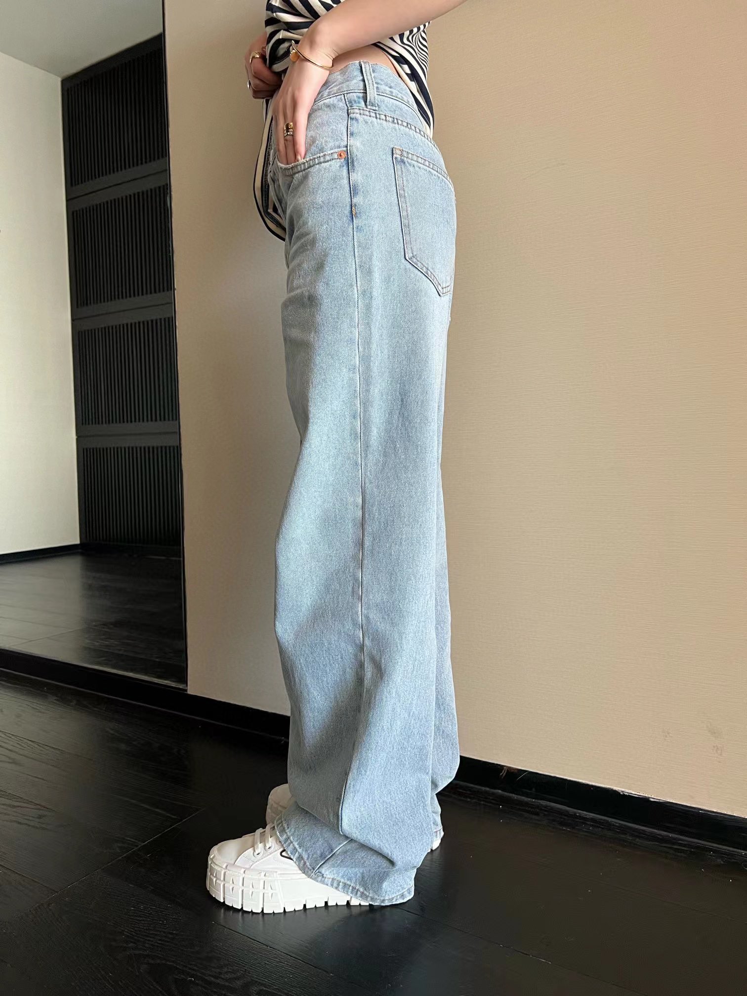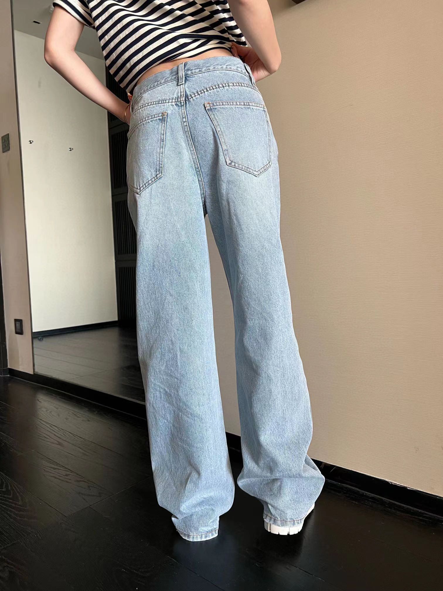 Spring and summer 2023 new vintage high-waisted baggy jeans with straight tube and wide leg pants for women