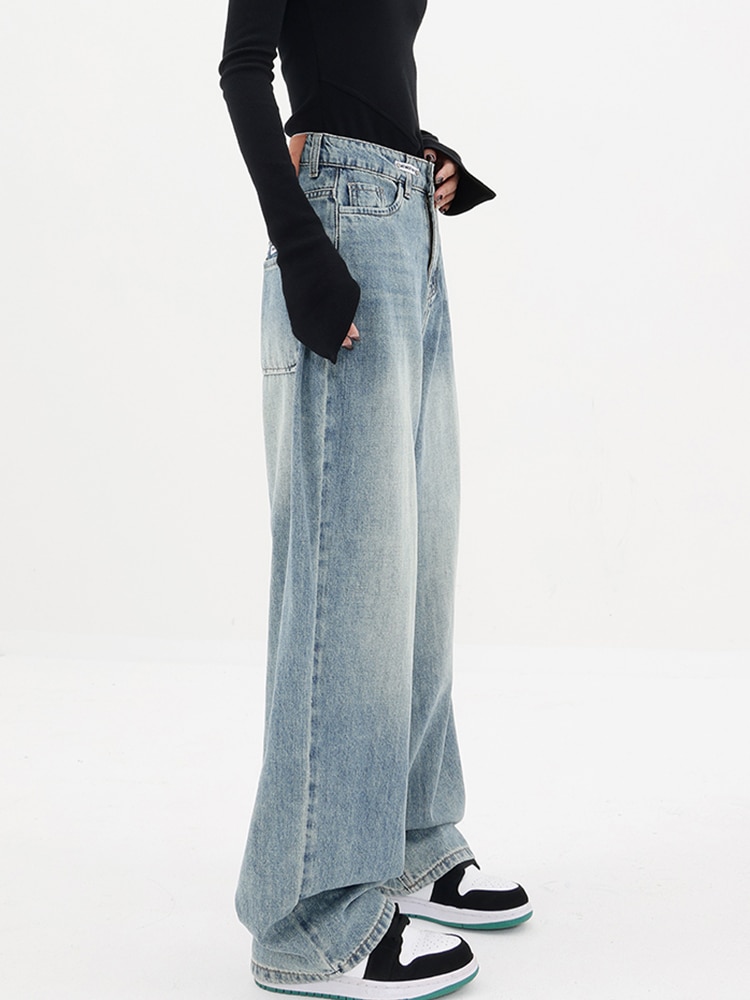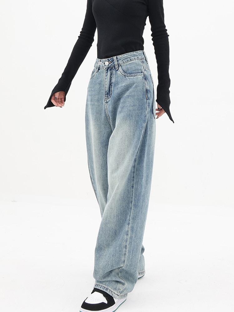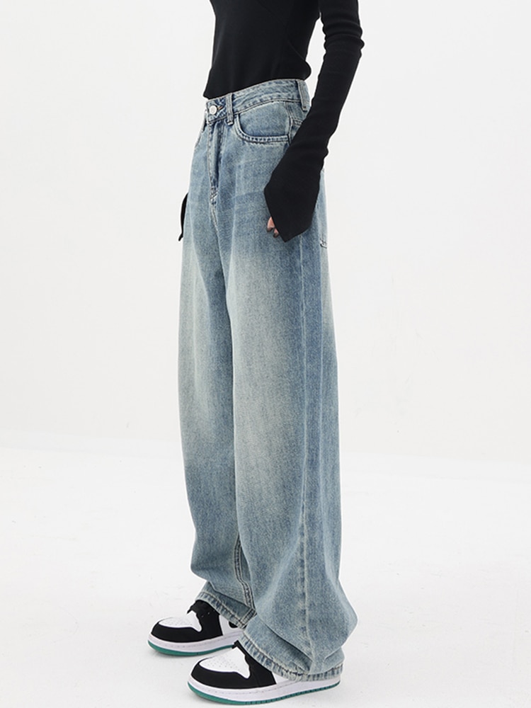 Jeans Women Denim Pants High Waisted Patchwork Full Length Korean High Street Comfortable Wide Leg Y2K 2023 Spring Office Lady