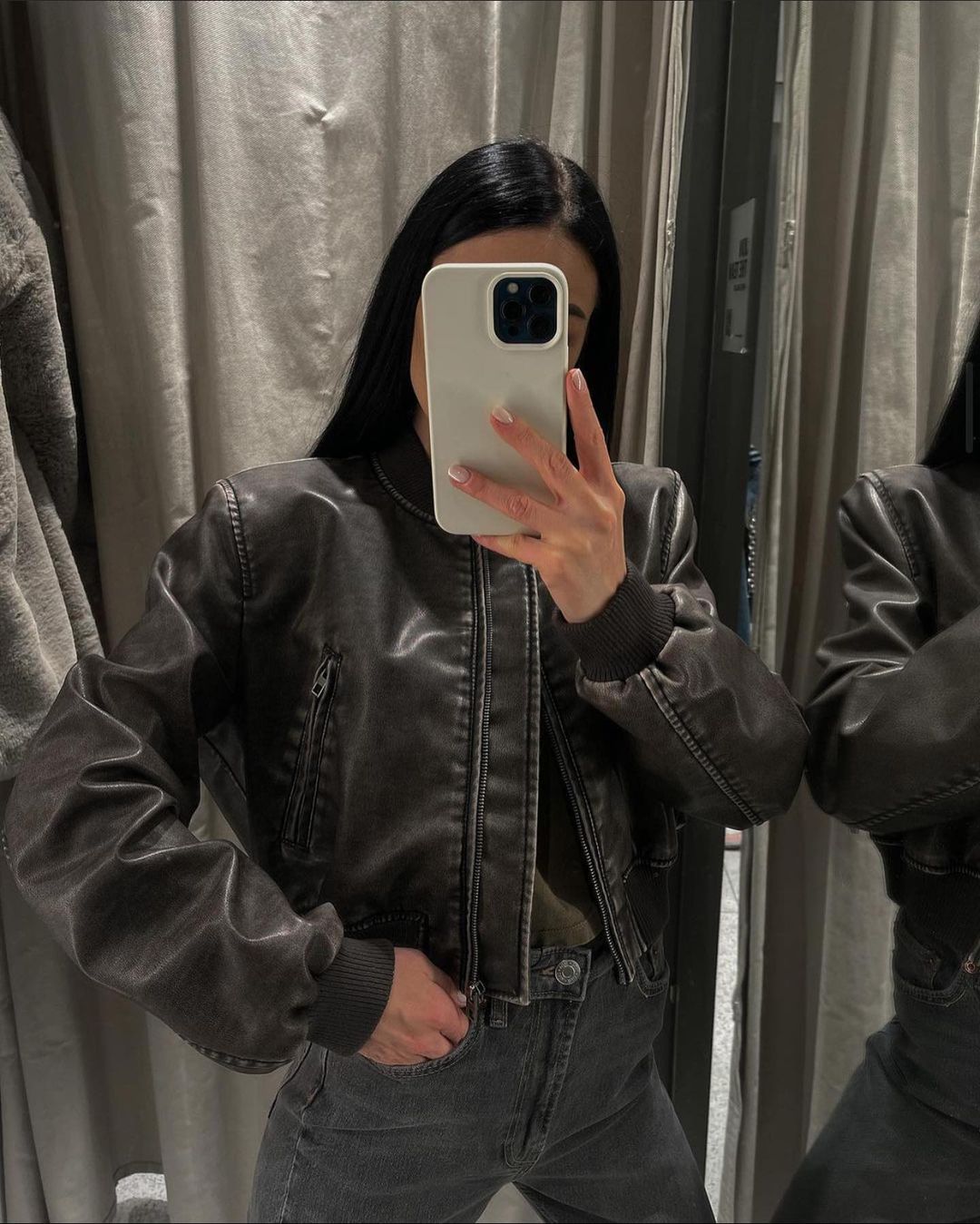 Women Washed Leather Loose Jacket Vintage Stand Collar Gradient Zipper Short Coat 2023 Spring Lady Locomotive Style Chic Coat