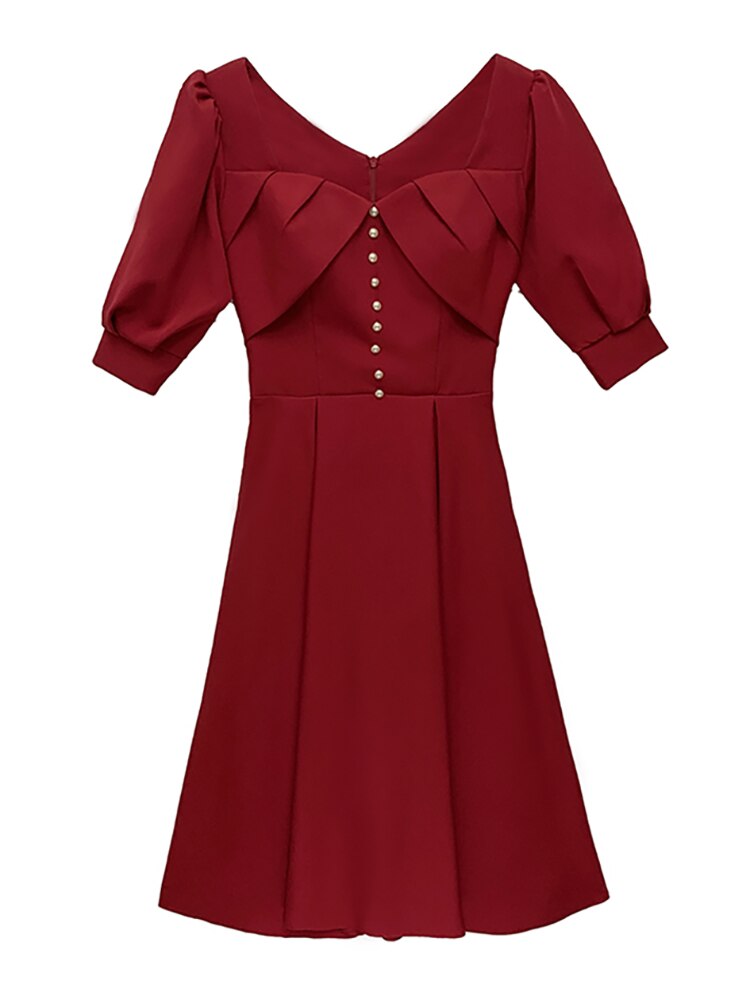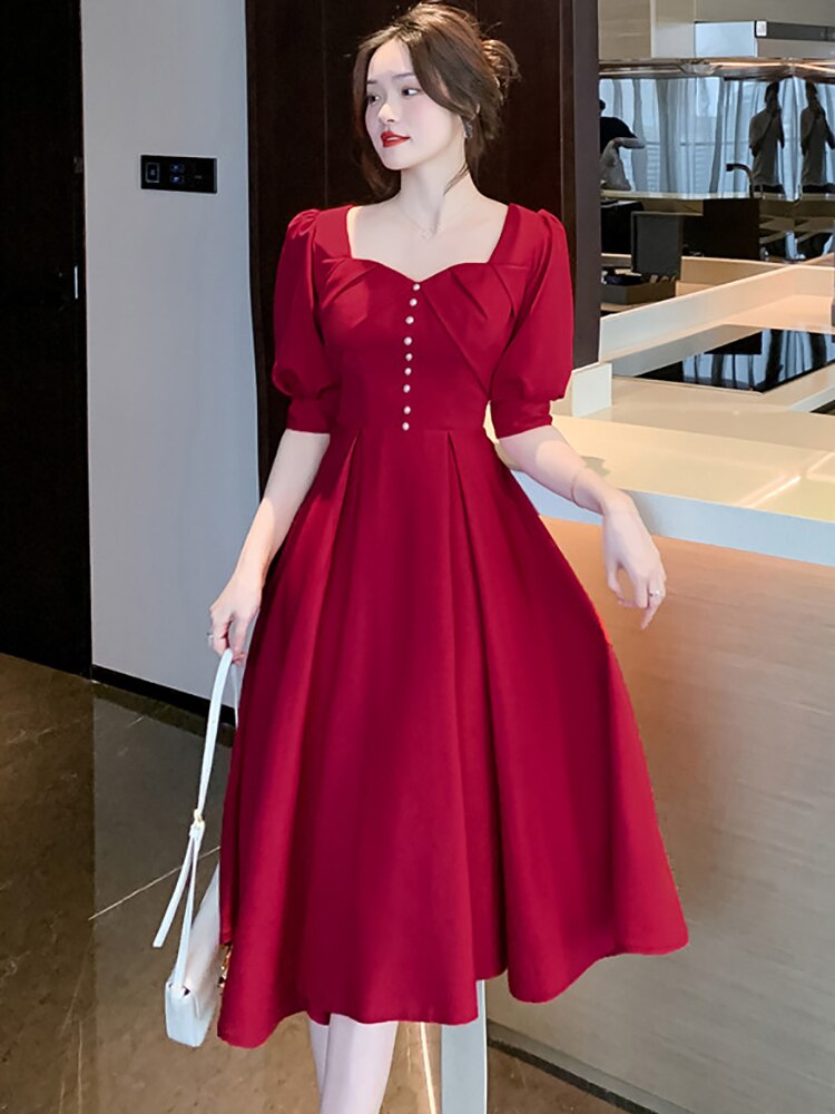 HUTI WJWYL New Arrival High Quality Women Red Puff Sleeve Square Collar Wedding Dress Summer Fashion Luxury Elegant Long Dress Korean Vintage Bodycon Vestidos