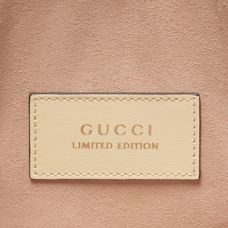 The Boundless Overture collection presents a new mini version of the Gucci Horsebit 1955 handbag in pale pink leather with precious python trim. The bag is embellished with the iconic horsebit hardware, reminiscent of the brand's long equestrian heritage.